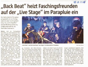 "Back Beat" heizt Faschingsfreunden auf der "Live Stage" im Parapluie ein |