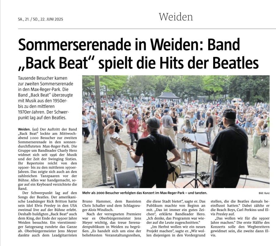 - Eine Zugabe für die Beatles - Back Beat im Max-Reger-Park - |